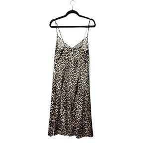 Two Arrows Leopard Print Midi Slip Dress in black and tan/golds. Wear it alone or under a blazer or chunky sweater.