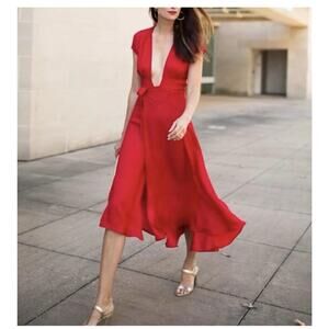Two Arrows revolve Felix Midi Wrap Dress Red Large