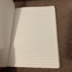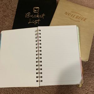 Two Notebooks see photos for colors. All are lined notebooks. One has never been used and the gold one was used but the handful of pages were removed. In excellent preowned condition. This does not include the back bucket list notebook.
