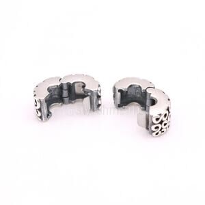 Two Authentic PANDORA Sterling Silver Swirls Clips Charms, 925 ALE Stamps