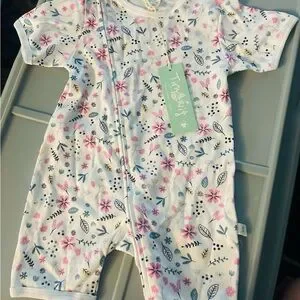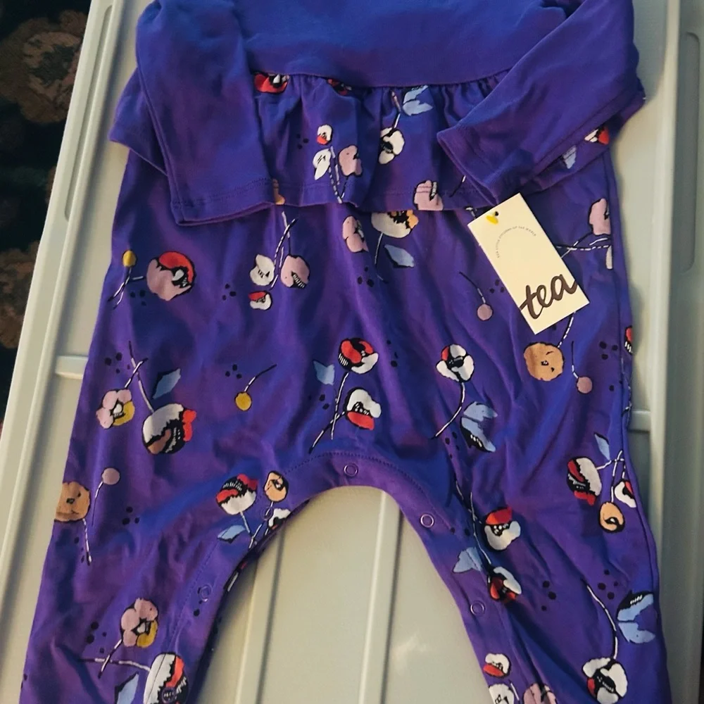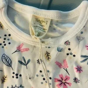 Purple floral, long sleeve, 9-12 months White floral, short sleeve, 6-12 months
