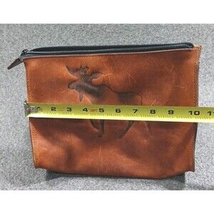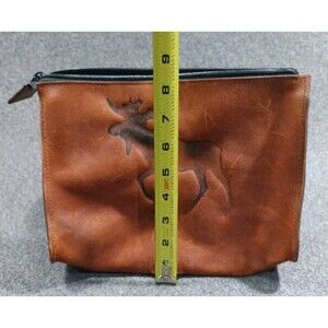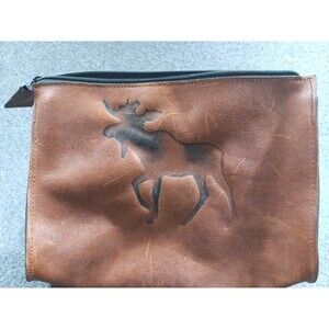 Great moose imprinted leather bag - no line - nice black zipper closure.