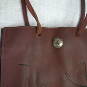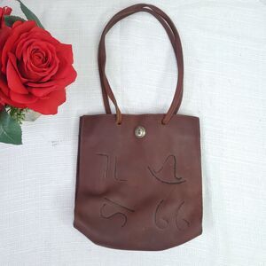 Two Bar West Cattle Branded Leather Double Sided Shoulder Bag Tote