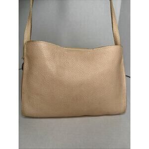 Two Bar West Leather Beige peach Cowhide shoulder bag Purse w/ Turquoise accent