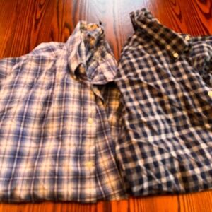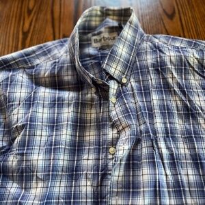 Both purchased in England by me in Covent Garden these two Barbour shirts come in plaid with va variety of blue and white checks. Sizes are USA XL. In excellent conditiona nd comesfreshly laundered from a pet and smoke free home.