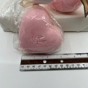 Gift bagged, two heart shaped, tea rose fragrance she butter soaps. Produits Naturelle. Made in France. Approx 3" high X 3 1/4" wide X 1 1/2 Deep..Approx 6 oz each