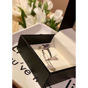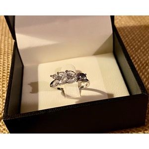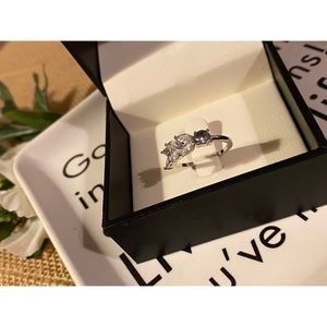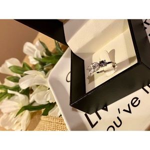 -Second ring is unique (CZ) flower like design with a blue/grey stone at end with sterling silver