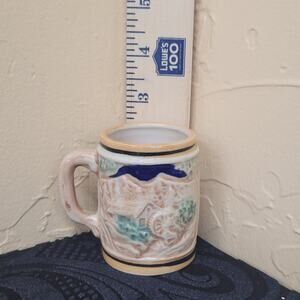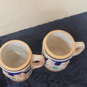 Two- Beer Steins; Miniature German Shot Glass Mugs Ceramic Collectibles Vintage