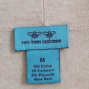 Two Bees Cashmere Cardigan Medium Cream Fur Ball Tassel Edge Open Front Sweater