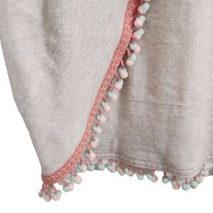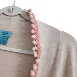 Two Bees Cashmere Cardigan Womens Medium Cream Fur Ball Tassel Edge Open Front