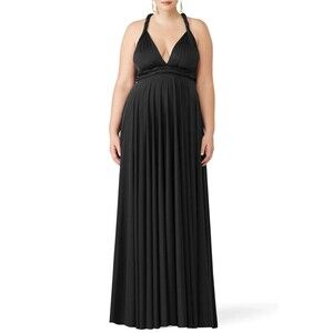 Black jersey (96% Polyester, 4% Spandex). Convertible sleeve. Convertible neckline. Gown. Made in the USA. Gown can be worn 15 different ways.