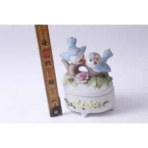 Two Birds, Couple, Ceramic, Oval Box, Floral Pattern, White, 4" Tall, Jewelry,
