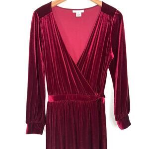 Two Birds New York Red Velvet Long Sleeve Wrap Maxi Dress Size Medium
