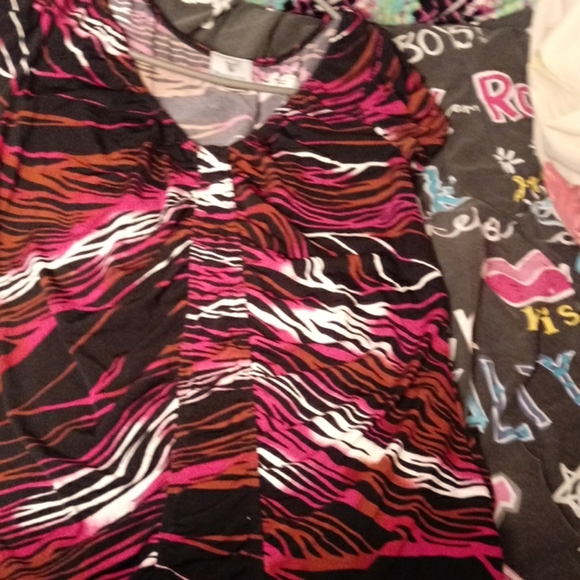 One is purple and black - one is teal and black - both mediums - both never worn