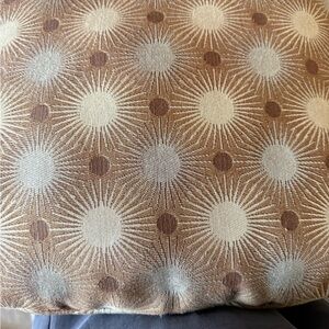 Enhance your living space with these stylish brown patterned throw pillows. Perfect for adding a touch of elegance to any room. Like New. Smoke Free, Pet Hair Free Home. Each pillow is 17 in x 17 in.
