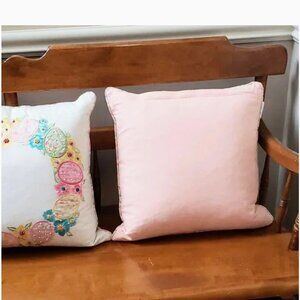 These pillows are stuffed with feathers. Beautiful Easter wreath and colors. Comes from a non-smoking house. Great condition.