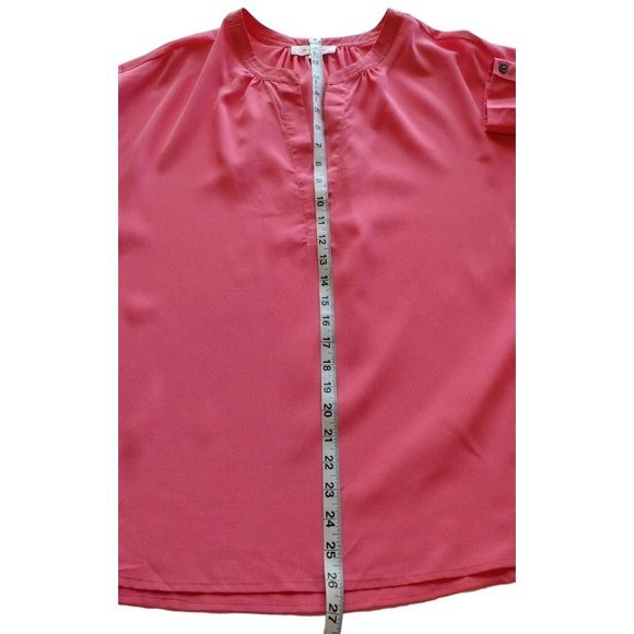 Two By Vince Camuto Top Small Button Cuff V Neck Tab Sleeves Peach Pink. No flaws found. Polyester.