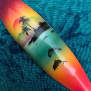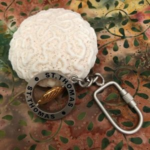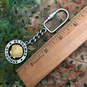 Two keychains purchased on a Caribbean vacation about 20 years ago - but never used. St. Thomas Surfboard has beautiful colors and the shell rotates on the St. Maarten one. Nice!