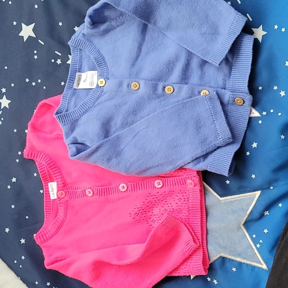Two Carter's cardigan, barely worn. The pink one has detailing on the front.
