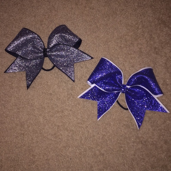High Quality. Two cheer bows. Originally $25 each. Royal blue with white lining $15 individually (see different post for individual purchase) Grey with black lining $15 individually (see different post for individual purchase) Sold together $25.