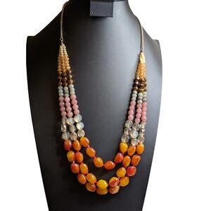 Two Coordinating Loft Beaded Orange Pink Yellow Gold Tone Beaded Long Necklaces