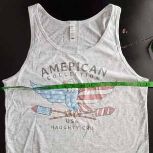 Two Cotton tank tops, USA tank top new never warn, orange tank gently warn, measurements as see in picture, smoke-free home.#74