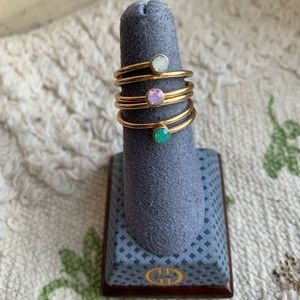 Silver tone ring with five colored stones is approximately a size 7-1/2