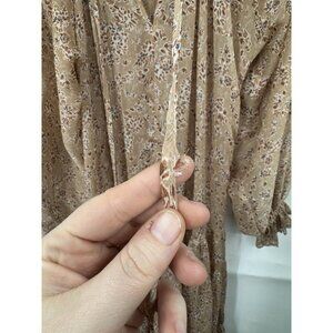 Two Cumberland Floral Midi Dress Women Medium Tan Cottage Prairie Peasant Boho