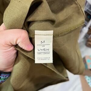 Two Days Off 100% Linen Suki Sheath Dress Pockets Moss Green Lagenlook Medium
