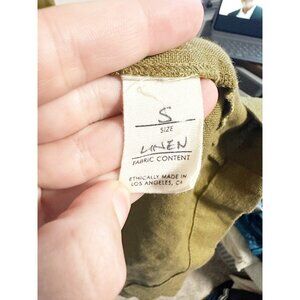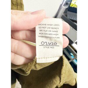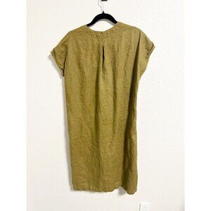 Two Days Off Kaneko Linen Dress Button Up Short Sleeve V Neck Moss Green Small