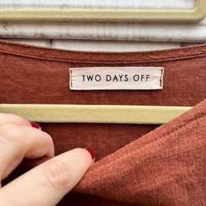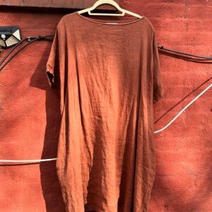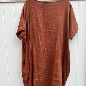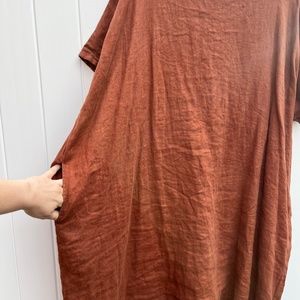 Beautiful garment, in perfect condition other than a little rumpling, as is the course for linen. Worn outside one time, washed and dried once. I love this dress! Can be steamed for that crisp and unwrinkled look, which I will do prior to sending (: