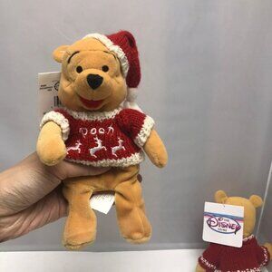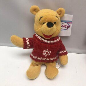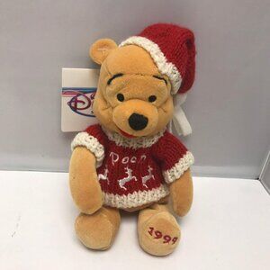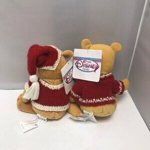 Two Disney Winnie the Pooh Bear Holiday Christmas Sweater Plush Beanie Babies