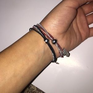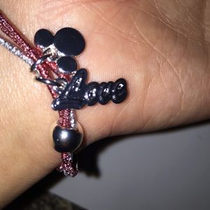 One red and silver bracelet with silver bulb, silver "love" charm, and silver Mickey shape charm. One silver and black bracelet with silver bulb, silver diamond charm, and silver Mickey shape charm. Both are included in pricing. Both bought in Disney world.