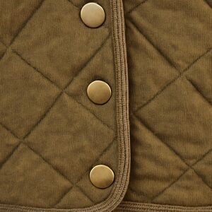 Cozy, easy layer in an on-trend olive. Quilted diamond pattern with a soft 100% cotton shell and lightweight poly fill for warmth without bulk. Zip front, ribbed stand collar, and snap-accent side panel detail. Perfect over tees, flannels, or hoodies for hikes, tailgates, and everyday errands.
