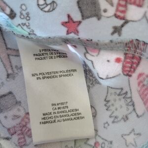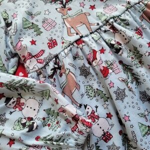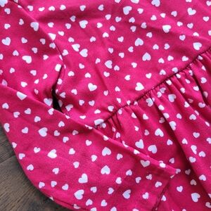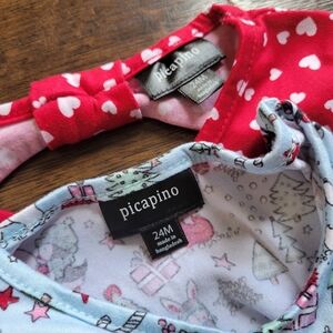 Two long sleeve dresses. Light blue with Christmas/winter pattern print. Red with hearts pattern print. Size 24 months. Some wash wear. See all pictures as part of the description.