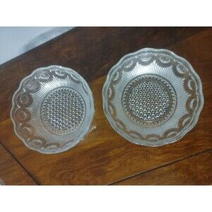 Add two charming vintage pieces to your collection with this set of two U.S. Glass Manhattan Sherbet Bowls. These 4.5-inch diameter bowls are a beautiful clear glass, perfect for adding a touch of elegance to any dessert course. Crafted from high-quality glass, these bowls are durable and will last for years to come. The intricate design on the bowls is a testament to the craftsmanship of the U.S. Glass company, making them a great addition to any collection. These bowls are 2 inches deep and are perfect for serving sherbet, ice cream, or any other cold dessert.
