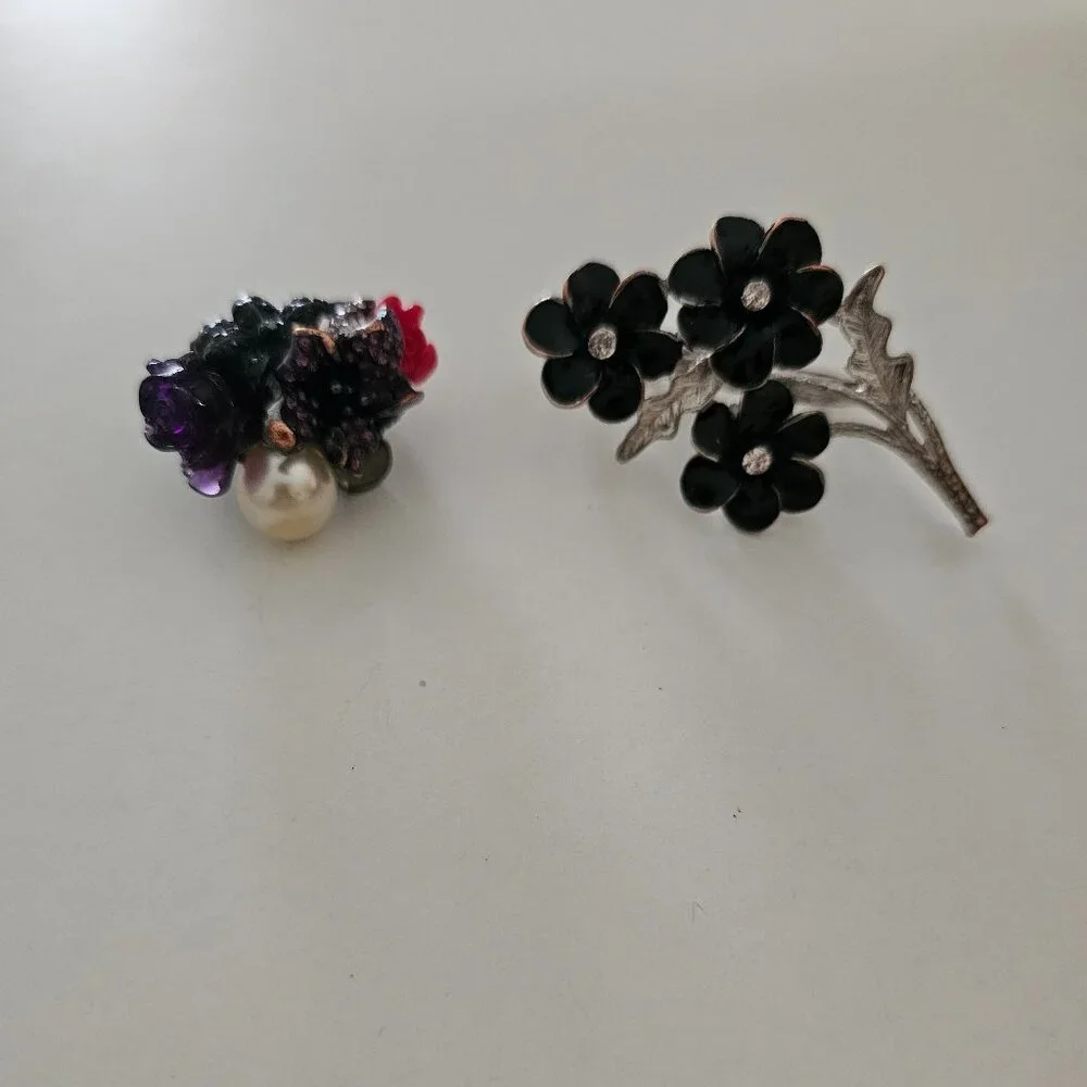 One black and silver flower ring for two fingers and