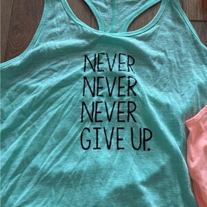 Two flowy exercise tops - one in an aqua color and one in coral. The coral one has a netted back and the aqua one is a racerback style. Perfect for yoga/pilates/gym and in excellent condition, just don’t have tags on anymore