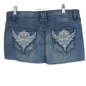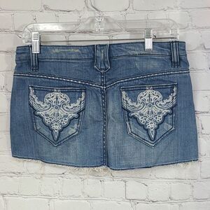 Two Generation Embroidered Denim Skirt Distressed Western Blue Jean Cowgirl Mini
