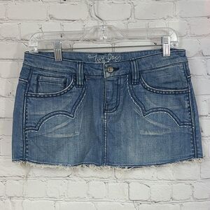 TG Juniors Medium Western Denim Skirt Distressed Stretch Blue Jean Mini Raw Edge