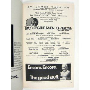 Two Gentlemen Verona Playbill 1972 St James Theatre Allen Davilla Shakespeare