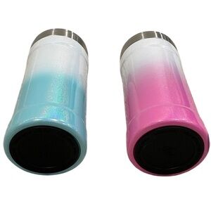 Two Glitzy 12 oz Can Cooler in Blue Teal Pink Sparkle Ombré Skinny Can Fit Shiny