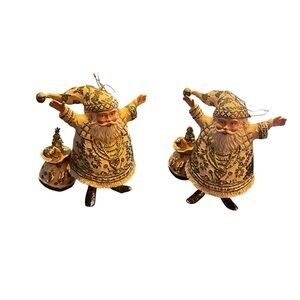 Two Gold Paper Mache Santa Ornaments Vintage Large