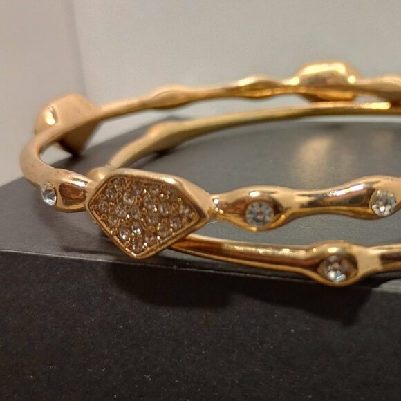Two Gold Tone Rhinestone Bracelets
