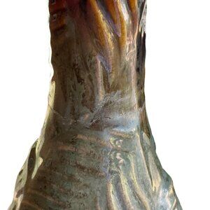 Gorgeous blue-green vases with leaf design and unique reddish-brown accents at the top. Height approx. 12” and width at the widest point is approx. 5”. Very beautiful pieces that are about 20 years old. No cracks or defects on the first vase.