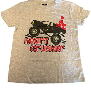 Two boys shirts size 6/7. This stylish gray kids shirt from features a bold 'Best Kid Ever' print. Perfect for everyday wear, it combines comfort with a fun design. As well as a heart crusher t-shirt with a truck