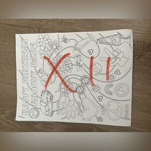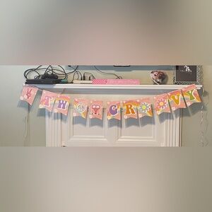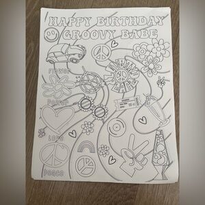 Lot of Two Groovy party supplies. Lot includes 11 coloring pages, VW Photo Booth banner (we never opened so may not look exactly like the one in photo), two groovy banner, two groovy string banner, and unopened/unused balloon arch.