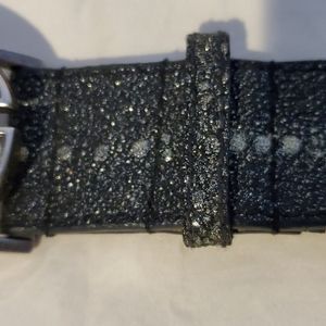 Two Guess cream and sparkle & black /silver leather belts XL