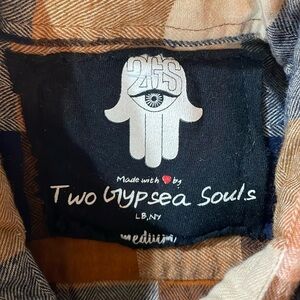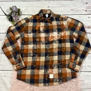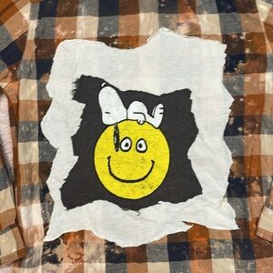 Two Gypsea Souls Peanuts rustic orange upcycled Graphic Snoopy Tie Dye Flannel Button Down Top. This top is in great used condition