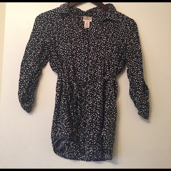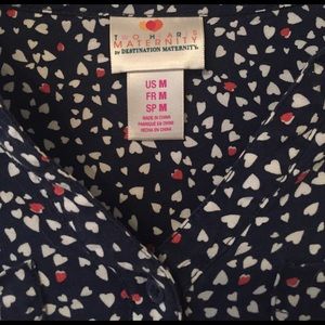 Two Hearts Maternity Blue Button Up Shirt w Hearts